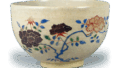 This is a small, Kuchiyose type incense burner, also made by Insei, with legs on three sides of the bottom. The body is slightly bulged, and the entire surface is covered with a white glaze with rough penetrations and a tortoiseshell pattern in silver, red, and green from the mouth to the outside. The oval “wisteria” mark is stamped on the base, but it is not clear in which kiln it was fired. However, there is no doubt that it was made before the middle of the Edo period.