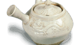 This inkstone box is shaped like an inkstone box with seven Japanese books stacked on top of each other. On the ground, there is a gauze pattern, and in the center, “Eika Monogatari Goga” is written in black on a white background in the shape of a strip of paper. The design is very typical of Kyoyaki pottery.