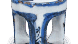 This is a Dingko furnace for roasting Dingko. In the past, it was customary to roast the bark of the Dingko tree in the washroom to release an aroma and eliminate odors, and in Kyoto, such a luxurious Dingko furnace was probably used by the upper class. This is the finest example of one of the many surviving Kyoyaki Dingko furnaces. The entire piece is thinly made and decorated with wave and thunder patterns in overglaze enamels, while the lid of the kettle and the furnace are openworked with a mokuremon or cloisonne design.