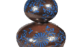 This vessel may have been used for burning incense inside. The lid and the hexagonal body are decorated with a cloisonne transparency pattern, while the ground is decorated with paulownia arabesque and serrated patterns, and the neck is covered with paulownia arabesque. This is the most exquisite of its kind, with an exquisite workmanship unique to Kyoyaki ware. The base is made of fine, high-quality clay.