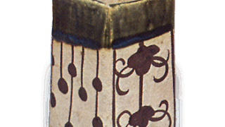 This mukozuke bowl has a unique shape with multi-petaled chrysanthemums and maple-like leaves, and is made in a mold. It has legs on three sides of the bottom, and the seal “Kiyoshi” is stamped on the back of the bottom. The front is decorated with small flowers among chrysanthemums, and the leaves are painted with green, blue, and white overglaze pigments.