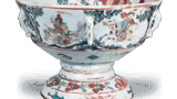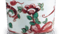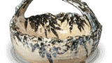 This is a flat brush dish with a slightly curved shape. The sides of the dish are raised at the edge, and a brush rest is attached to the expected side of the dish. The interior and exterior are decorated with phoenixes and floral motifs, and the front is decorated with fish. The glaze is thick and slightly bluish, and the mouth is decorated with a worm-eaten glaze with a “hake” pattern and a thunderbolt pattern on the low base. The bottom of the bowl is inscribed “Made in the year of Tenmei” in iron rust, overlaid with green overglaze enamel, suggesting that this is an early example of Yi River’s work.