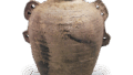 This is a rare large jar that retains its perfect appearance. It has a round-bottomed body with a stout shoulder, and the vessel’s surface has been adjusted with striated knapping tools. The neck of the mouth is heavily outwardly bowed, and the lower edge is decorated with a painted serrated pattern with multiple lines. Normally, large jars of this period are decorated with a comb-like wavy pattern, which may be another indication of the regional color of the Northeast region. The brownish-brown surface is covered with a yellowish-white natural glaze.