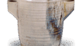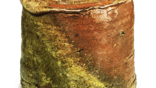 Ninami Michihachi established the Itto-do pottery style at the residence of Kakukura Gennai in Kyoto’s Saga district during the Tempo era, and this work is a fine example of the Itto-do style. This is another Ninsai-style gourd-shaped water jar that captures the essence of the original work. The iron glaze and milky white glaze are applied to alternate sides, and the glaze melts smoothly. The gourd-shaped seal of the Ippondo ware is stamped on the left side of the flat base.