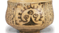 The lid of the box it came in is inscribed “Ninsei-style tea utensils, Nin’ami seal” and bears a gourd-shaped seal, and it is indeed a tea bowl with a smooth shape that imitates Ninsei. The foot of the bowl is open to the outside, and the inside of the foot is deeply and roundly carved, with a roundel standing in the center. The surface of the body is decorated with a picture of a bamboo and a Japanese bush warbler, but it is thought that this was painted by a painter of the same period, rather than by Niami. The entire surface is covered with a yellowish white glaze, leaving the foot area untouched.