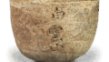 The lid of the box is inscribed with the words “Soba-mochi tea utensils, Niami seal” and a gourd-shaped seal is stamped on it. It accurately reproduces the shape of a soba tea bowl with a wide interior, and the glaze is slightly reddish and bluish, giving it a two-tone appearance. There are five marks on the foot and interior of the bowl.
