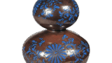 This is a bowl of the Unkinte style, which was the specialty of Doi Hachi, and is a Kenzan-style copy of a Kenzan bowl. The design, which uses iron oxide to depict cherry blossoms and maple leaves, is used in various bowls and incense burners, but this bowl is the largest of the lot. The maple leaf pattern is on one side and the cherry blossom pattern is on the other, and the glaze is a grayish-brown color with red highlights. There is a mark on the inside of the bowl indicating that it is the seventh piece made, and the mark “Michihachi” is stamped on the left side of the foot ring.
