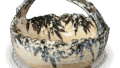 This is a deep, round bowl with a design of chrysanthemums in red and blue on the inside and outside. The clay body is the same as that of the Unkinte bowl, and it has been fired in the Gohon style. The mark “Momoyama” is stamped on the foot ring, and the words “Kiku no ga, Hachi-in” are written on the lid of the box, with the Momoyama red seal stamped on it. This is a work of Momoyama ware, which was produced after Niami retired.
