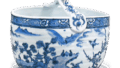 This is a thick, deep-sided, bowl-shaped water jar. The foot of the jar is flared out, and the tatami mat is exposed. The body is white and finely textured, and there are eleven snowflakes of different shapes painted in dark underglaze blue on the outside. Inside the foot ring is the blue-and-white inscription “Dai Nihon Heian Eiraku Hozon Zou”, and on the underside of the glaze is the seal “Kawahin Shiryū”. The box is not a matching box, and on the underside of the lid is the inscription “Matayoshi-Sonshi Gokō”.