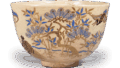 This is a Yohen Tenmoku tea bowl that was passed down in the Maeda family of Kaga. It is said that there were only six Yohen tea bowls in existence in ancient times, but today we know of only four: the Inaba Tenmoku tea bowl (National Treasure, Seikado Bunko Art Museum) that was passed down in the Inaba family of Yodo, the Yohen tea bowl (National Treasure, Fujita Art Museum) that was passed down in the Tokugawa family of Mito, and the Yohen tea bowl (National Treasure) that was passed down in Ryukoin Temple in Kyoto. However, they are precious objects that can be found nowhere else in the world except in Japan, and they should be called the treasures of Chinese ceramics.