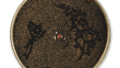Taihagai, owned by Tsuchiya Samon, 2.4 cm in height, but including the incense burner, the mouth (diameter) is 4.15 cm, the incense burner is 1.8 cm, and the handle is 1.5 cm. The handle has a plum blossom design. with gold inlay, box-shaped lid, plain paper cover, gold powder maki-e, sand-grained back, chrysanthemum design on lid, “Taihate Tenmoku” inscription, as shown on the right, with a chrysanthemum design on the Tenmoku stand