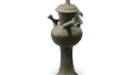 This is a rare bird-shaped button lid with three birds. The central bird is on a three-sided openwork leg and is slightly bent forward. Both sides of the back are flattened and expanded with dotted rows of patterns to represent wings. The two birds on either side have flattened bodies without pedestals, and the upper surfaces are decorated with dotted rows of dots.