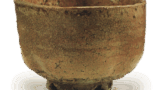 There are five marks where the eyes would have been, and the center of the marks is slightly sunken, with the marks from the potter’s wheel forming a spiral pattern. Although the overall impression is not one of a work full of power and depth, the varied glaze has a certain charm that will not fail to capture the heart of a sukiya (tea ceremony) enthusiast.