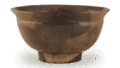 The clay is slightly ferrous and has a rough texture with small grains of sand. It is covered in a transparent white glaze on the inside and outside, but the glaze is not completely fired, so it is slightly translucent in places. In particular, the foot ring is not completely fired, and there is a mottled pattern on it, like a well, and the glaze also leaves marks from the fingers that held the bowl when it was being glazed, adding to the charm of the piece. There are cracks all over the inside and outside, but the thicker parts of the glaze are rough, while the thinner parts are fine. The inside and foot ring are unglazed, and have a reddish-black patina from tea stains. The firing is slightly oxidized, and the overall color is a dull yellowish-green, but there are also areas with a glaze tone similar to yellow Seto. The glaze is dull and the surface feels rough because the firing was slightly underdone. Also, because the clay body is not hard and well-fired, the bottom and the outside half of the vessel are stained with tea stains, which look like rain leaking in. The inside is almost entirely stained with tea stains, but the gradation of the color is interesting.