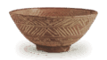 The shape is a shallow bowl with a flat rim, supported by a large bamboo-joint foot. The bowl is thick and solid. On the outside, there are three rows of the so-called hinoki-gaki pattern, which is carved diagonally with a tool, and on the inside, there are two rows of hinoki-gaki pattern around the rim, and seven flower patterns around the inside, and on top of that, there are thirteen flower patterns in a two-rowed pattern, and the flower patterns and the hinoki-gaki patterns inside and outside are inlaid with white clay. The white inlay is made by applying white clay to a red clay base, rubbing it with a damp cloth, and then filling in the carved lines and flower patterns with white clay, while wiping off the white clay from the rest of the surface. However, since the white clay is not completely wiped off, there are places where the white clay is faintly visible on the waist and inside the surface, and this also becomes part of the scenery of this teacup.