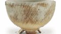 The shape is somewhat thin overall due to the simple potter’s wheel operation, but it is relaxed and spacious. The foot is large and elegant, standing firmly, and the rim is concave inwards on three sides, as if it were being held in. This is the only significant intentionality of this tea bowl, and this kind of distortion is also the most significant characteristic of the general Geumhae tea bowls.