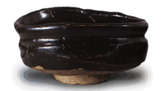 The exterior glaze has almost completely scattered in the kiln, leaving only a small portion around the foot ring, giving it the appearance of an iron plate. However, the glaze around the foot ring is black and glossy. The interior is covered with black glaze for eight-tenths of the way up, but the rim shows the same texture as the exterior.
