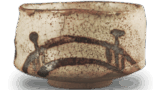 The rim is slightly convex, the body is bowl-shaped and full, and it has a low, sturdy foot. There is a shallow cutout on the underside of the base, and the body is exposed below the waist. This shape is relatively common in Karatsu ware, and there are many examples decorated with various patterns, but this is the only example of a body decorated with a circle and cross that we know of, and it is a rare example. This is one of the outstanding tea bowls in the category of painted Karatsu ware, and is one of the most memorable of the many examples of painted Karatsu ware.