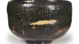 The design is relatively simple for a NINSEI overglaze-decorated tea bowl, with a half-cylindrical shape and a checkered pattern of diamond shapes and horizontal stripes, but the good proportions, clever color scheme and especially the bold use of gold make it a very attractive and luxurious piece. This is another unusual tea bowl by NINSEI, and is a rare piece that has hardly been shown to the public before. A similar example is the gold and silver diamond-patterned tea bowl in the collection of the Atami Museum of Art, and this is one of the few examples of its kind.