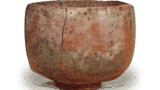 Setoguro was made in the Tensho period, so it is also called Tenshoguro, and it is also called Hikidashi-guro because it is pulled out of the kiln while it is still bright red and then cooled quickly. The reason that there are not as many Setoguro pieces left as there are Shino or Oribe pieces is that the number of tea bowls that can be pulled out of the smoke vents on the side of the kiln is limited, and only four or five can be fired in one kiln at most.