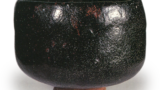 The inside of the bowl is deeply scooped out with a trowel, and there is a tea pool that is almost a perfect circle, but the center stands up like a helmet. There are marks on the rim where it was held by a carp, which shows that it was pulled out of the kiln while it was still bright red and cooled quickly in order to make the glaze black.