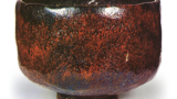 The brushwork of the Asahagi, with its lively and vigorous strokes of vermilion lacquer on a black background, is known to be the work of the calligrapher Matsudaira Fumai, and it is listed as a famous item in the Unshu Zocho (a book of famous items from the Unshu region). In other words, the inscription “Asahagi” is the name given by Fumai himself, and it is thought that he likened the picture of the fence to the way that the leaves of the autumn bush clover wave in the wind, and that he saw the white glaze spots spots are likened to morning dew, and the overall impression of a graceful elegance in a refreshing atmosphere is truly well expressed by the name “Asahagi”.