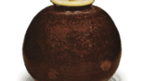 This is a “Kage” teacup in the same style as the previous two works. As mentioned earlier, this type of tea bowl, called “painted Korai,” was made in large quantities at the Gizhou kilns in northern China as a miscellaneous folk artifact. Therefore, they had to be placed in the kiln in layers, and the bottom of the bowls were cut into a large serpentine pattern, the glaze was peeled off, and the base of the upper bowl was placed on top of the bottom. Otherwise, the glaze would melt and adhere the upper and lower bowls together. This snake’s eye, which was created out of sheer necessity, was seen as a pleasing sight by the Japanese tea masters, and is one of the promises of the painted Korai tea bowls.