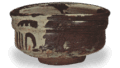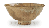 The rounded bowl body with a protruding waist is lightly pressed into a tapered shape, with large chisel marks at the corners of the waist, and a high foot cut into a tortoise shell shape—all as described above. The contrast between the upper part with fine, thread-like wheel marks and the thick, bulging waist with chisel marks is always fascinating. The glaze is predominantly white with subtle red and blue mottles appearing here and there, making it endlessly fascinating to look at. Especially from the waist down, due to the thinness of the glaze, stains from air bubbles resemble rain leaks, and where the glaze has chipped away, the black of the clay peeks through, evoking the appearance of spring snow melting and covering the ground.