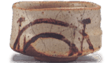 It is a fairly tall bowl, and therefore has a deep and spacious interior. The interior features swirling wheel marks, and four marks where the tea bowl was placed on the stacked firing remain, creating a scenic pattern.