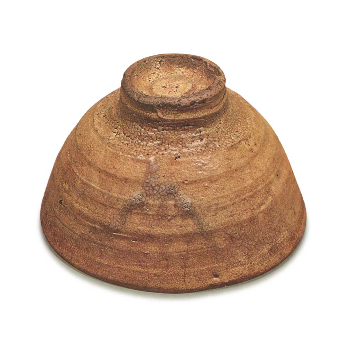 This is also one of the well-known tea bowls acquired by Matsudaira Fumai, who apparently had a particular fondness for well-style tea bowls. As promised, the bowl has a slightly curved shape, with a tall, wide bamboo-jointed foot, and the bowl body features wheel marks.