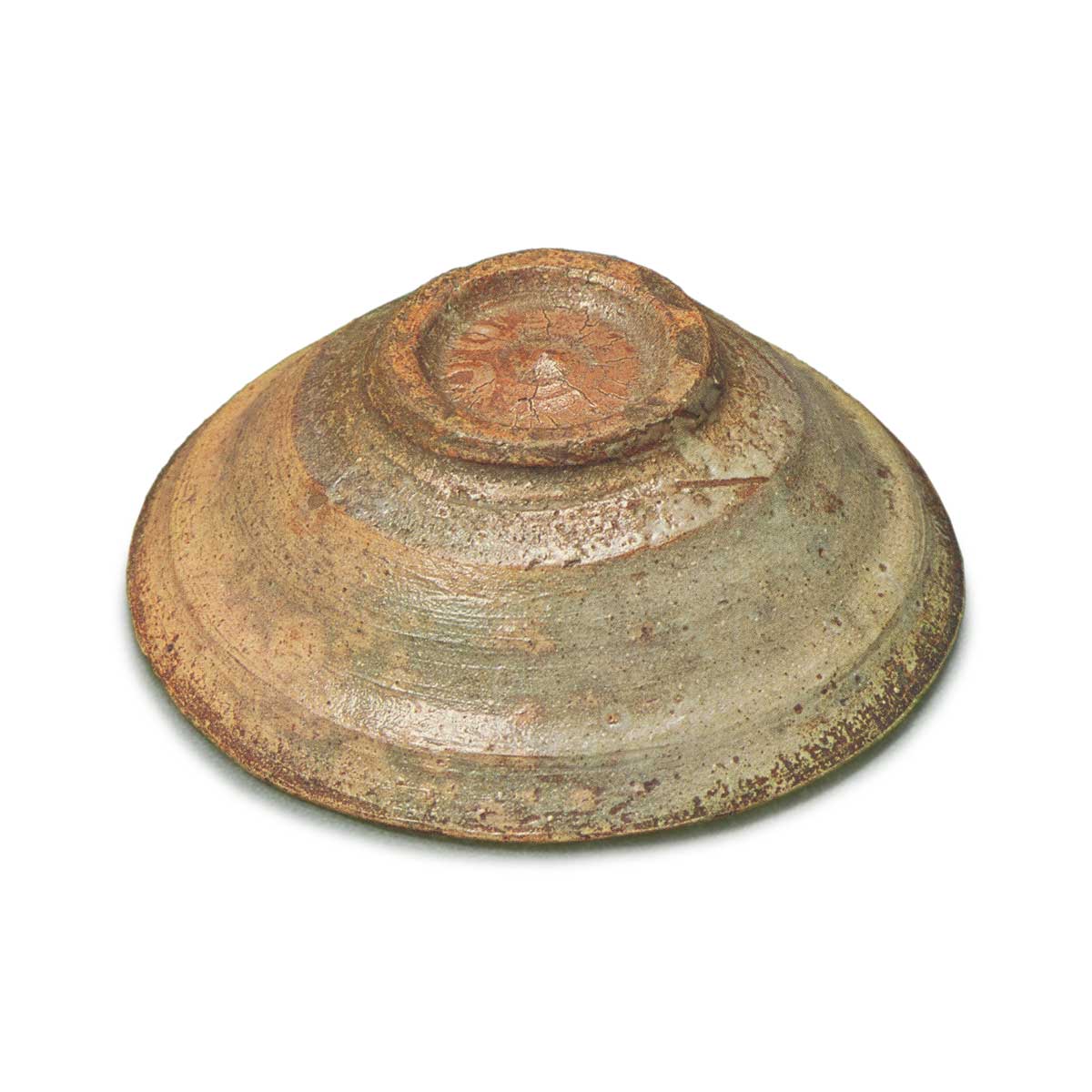 The foot is shaped like a thin bamboo joint, with a vivid red hue, and the central part stands out like a helmet, creating a focal point. The dense, earthy texture surpasses that of the main body, and the rough handling enhances the distinctive characteristics of the Hira-dōya style.