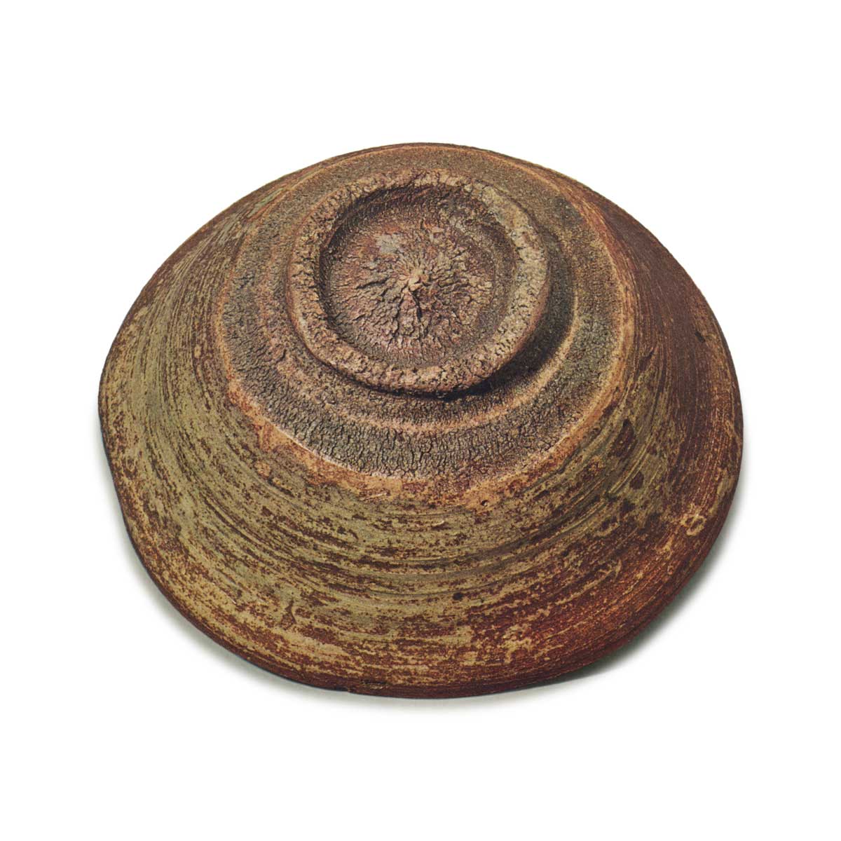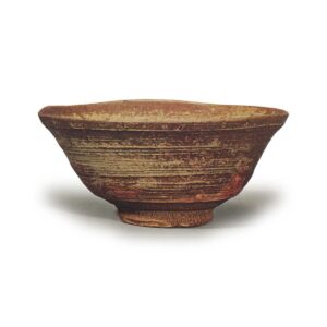 This is a genuine Dōdoya piece, featuring subtle variations in the craftsmanship and vividly defined fine grooves. The base is adorned with elegant crepe-like wrinkles both inside and out, creating a striking visual appeal. The glaze appears slightly worn, with reddish hues emerging in thinner areas and yellow-green tones in others, evoking the autumn scenery of wild mountains and deepening the tea ceremony’s aesthetic charm.