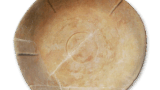 This small, flat-rimmed jar with a horizontally bent mouth rim is not so common. It is made of high-quality grayish-white clay and shaped on the potter’s wheel with the lower half of the body shaved off. The ash glaze on the shoulder is not certain whether it is natural or artificial. The lower half of the body is decorated with cedar leaf-shaped inscriptions in six directions from the shoulder to the lower half of the body. Although it is not clear what the design was intended to express, it is a rare example of an ancient style jar with inscriptions, probably dating from the latter half of the 9th century.