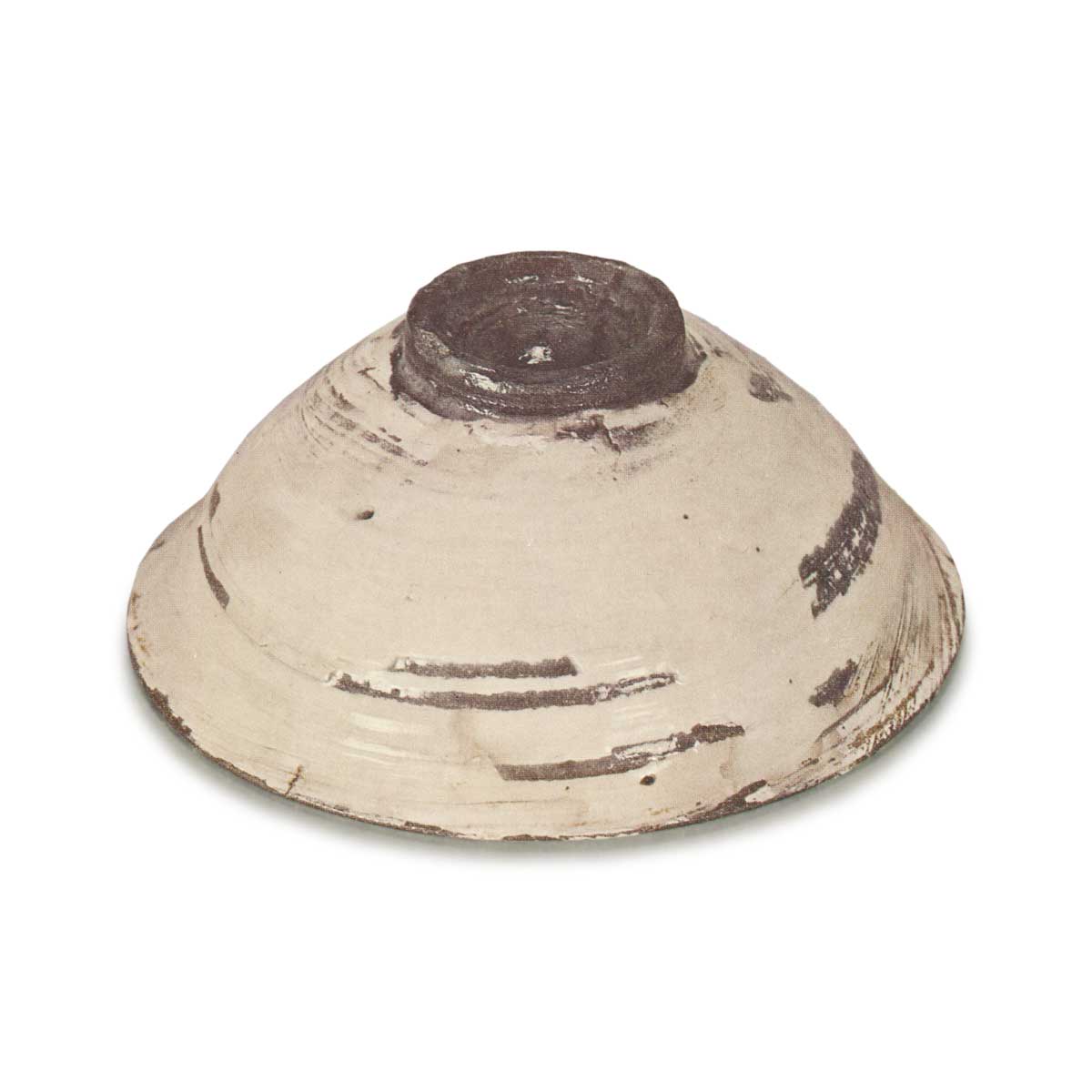 This piece is famous for its brushstroke pattern and is renowned in the Hirase family. Its beautiful, pearl-like texture inspired Hirase Ryuko to name it “Goufu,” which means “pearl.” The base clay is a dark brown, sticky clay, and except for the foot, the entire surface is covered with a thick layer of pure white slip applied with a brush.The contrast between black and white is sharp and vivid, giving it a crisp, lively appearance. The rim features five eyes, with rainwater drainage patterns forming a scenic design. The base features a well-defined helmet-shaped rim. The overall design is crisp and lively, with vigorous brushstrokes, making it one of the finest examples of brushstroke-patterned ware. It is likely of the same quality and origin as the “Upper-grade powder-coated ware.