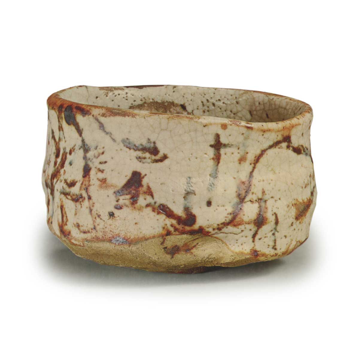 The rim is distorted into a rectangle, but rather than being a drawback, it adds to its charm. The white glaze and the pleasant crimson color of the iron pigment give it an indescribable appeal.