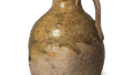 This vessel was made by first making the base disk, then forming the basic shape of the body by winding up the corded clay, and then shaping the entire body on the potter’s wheel, which is a fairly low level of wheel throwing technique. The potter’s wheel technique has declined considerably. The entire surface is covered with ash glaze applied by brush, but the glaze layer is thin and has a light green color. There are very few complete large handled vases, and this is one of the most representative examples.