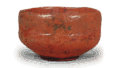 There are four eyes on the tatami mat, and the Raku mark is vivid inside the high foot.