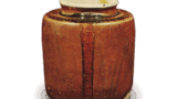 This tea caddy has been highly prized since the early days of tea ceremony.The distinctive features of this tea caddy are its rare flat shoulders and bulging body. In particular, the glaze patterns, which were chosen by the four master craftsmen Jukō, Rikyu, Oribe, and Enshū according to their individual preferences, and the fact that each of them added their own favorite cover, demonstrate how highly this tea caddy was appreciated.