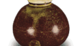 Among eggplant-shaped tea caddies, this one is particularly heavy in form, with a deep glaze and glaze pools at the shoulders. The single line that flows smoothly from the shoulders to the base is especially remarkable.