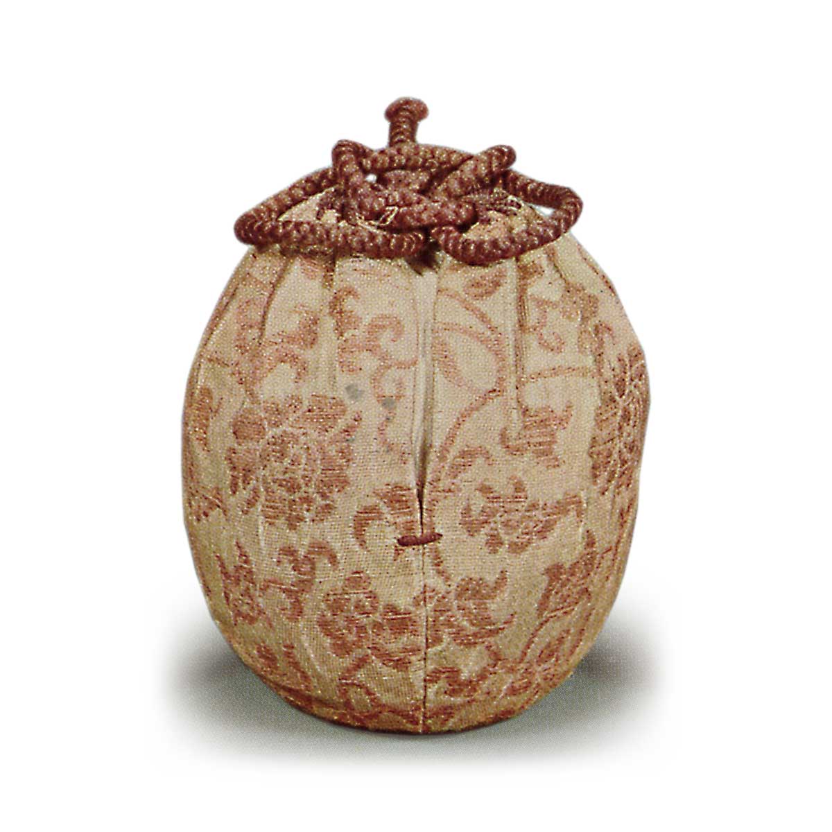 This tea caddy has a rounded shape with slightly raised edges.