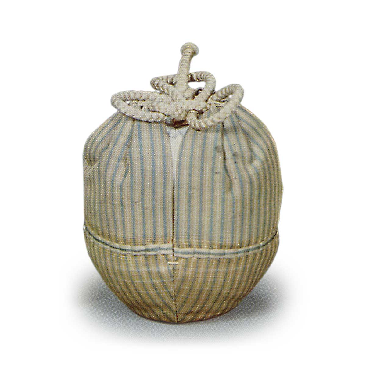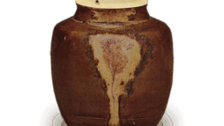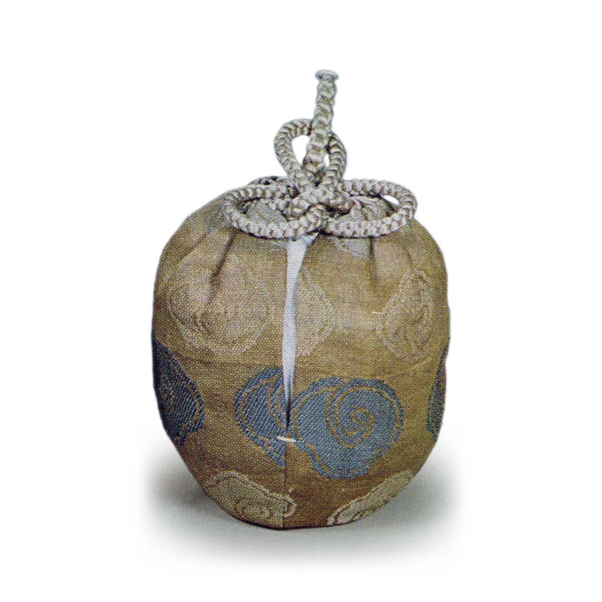 This tea caddy is a slightly tall, round Bunrin-style caddy. The slightly yellowish tea glaze and swirling cloud-like pattern make it suitable for display.