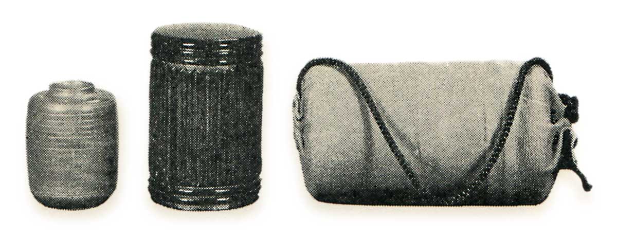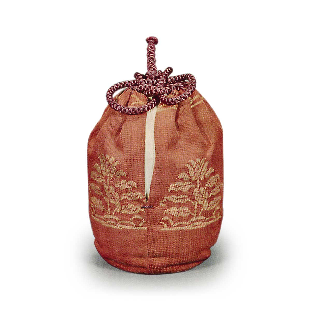 Three replacement covers are included. Starting with the rare Tanji chicken-head design, the three pieces by Kakukura and Shōchi all combine Kinran fabrics. This pairing, contrasting with the tea caddy’s austere taste, likely reflects the preference of Enjōbō, who is said to have inherited Rikyū’s secret teachings.