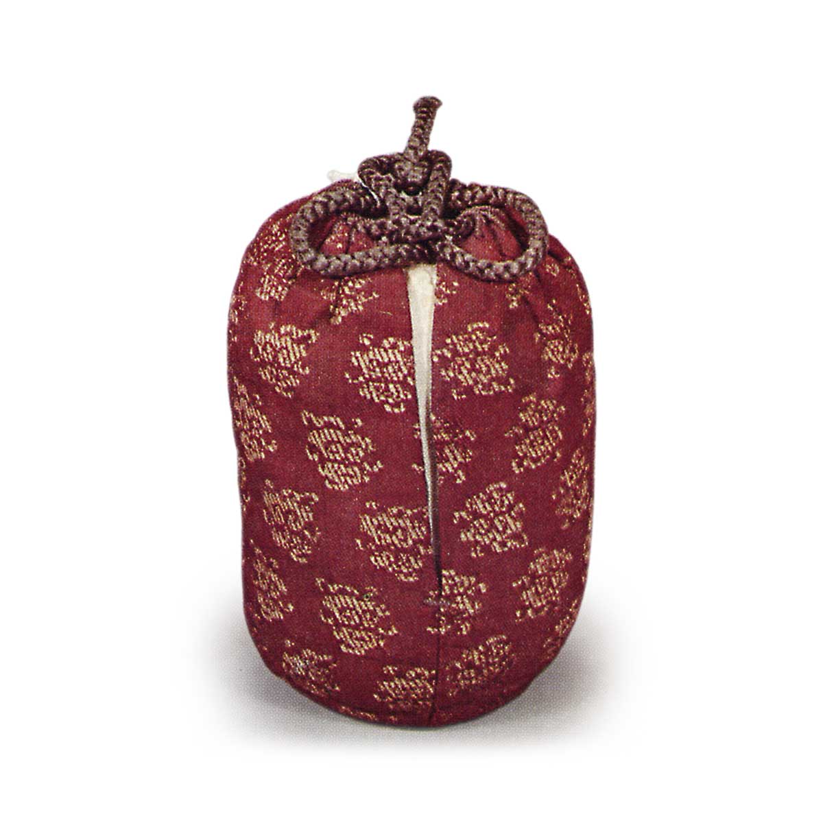 The cover bag is unusual, featuring a gold-and-silver brocade over a red ground with Chōraku-ji temple motifs.