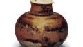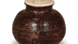 The black glaze pools over the Seto-style glaze, and the uneven texture across the surface likely resulted from the black glaze naturally gathering and cascading forward.The earthenware’s patina, refined by years in the hands of a cherishing collector, also presents an indescribable wabi-sabi beauty.