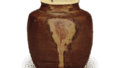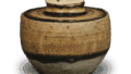 The rim, reminiscent of an ancient jar, and the body tapering from sloping shoulders to the base similarly evoke an old pot. Moreover, a rustic red persimmon glaze is applied casually, over which several streaks of black Seto glaze begin to separate. Among these, one thick streak forms a distinct pattern, flowing all the way to the base.