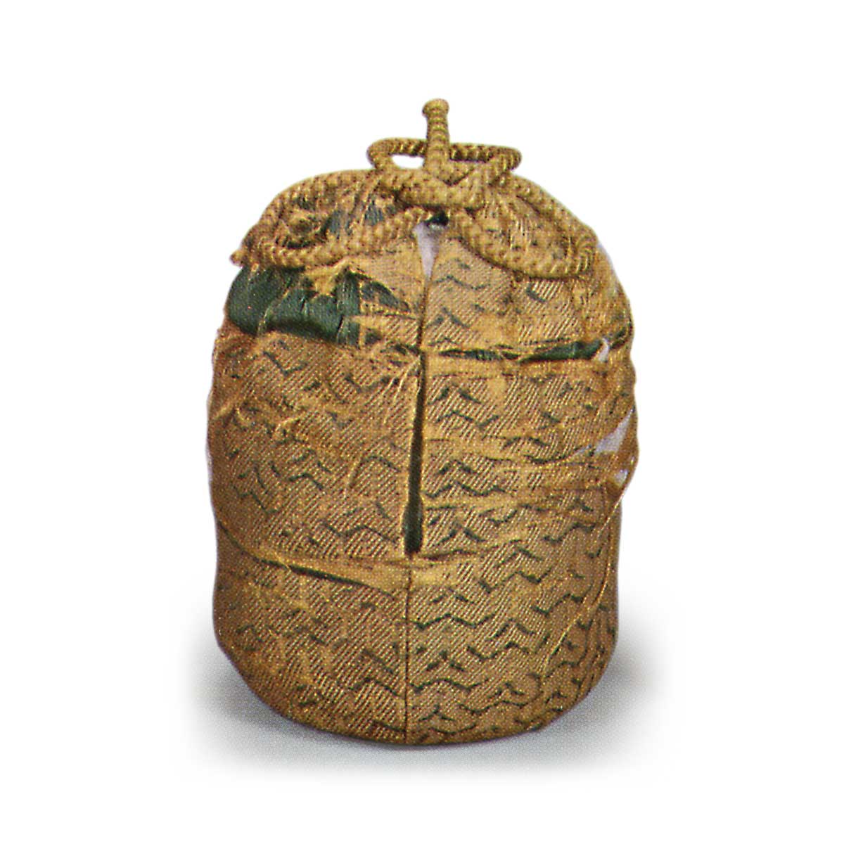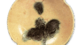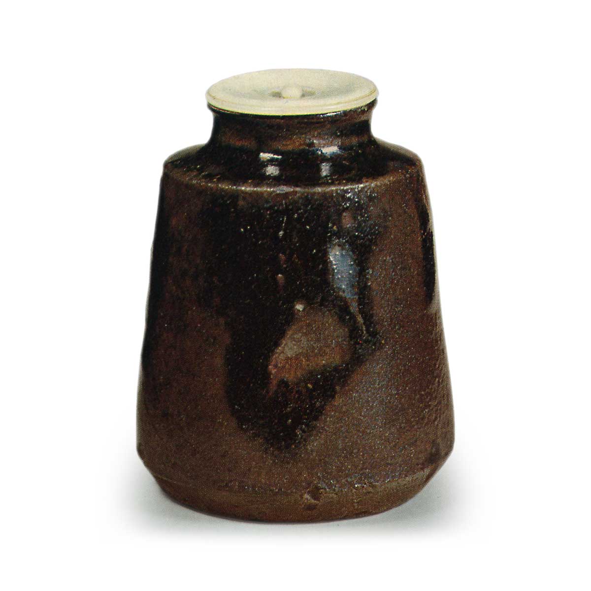 This tea caddy is classified under the Kinka-zan kiln, but its protruding form is said to be an unusual shape even among Kinka-zan wares. The glaze characteristics of Kinka-zan kilns are most clearly evident in this tea caddy, often presenting an intriguing appearance.It is also said that Enshū chose this inscription based on the glaze patterns appearing midway up the body. This distinctive form is considered a characteristic feature of this