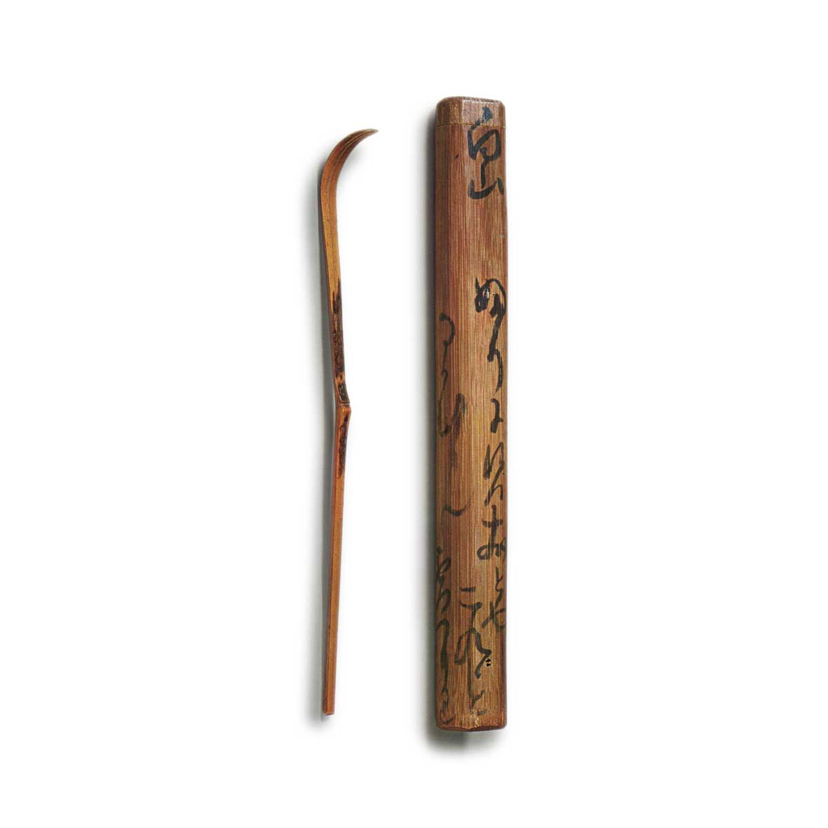 Inner box: Paulownia wood, natural finish, with label and inscription: “Teaspoon of Lord Kanamori Sōwa”