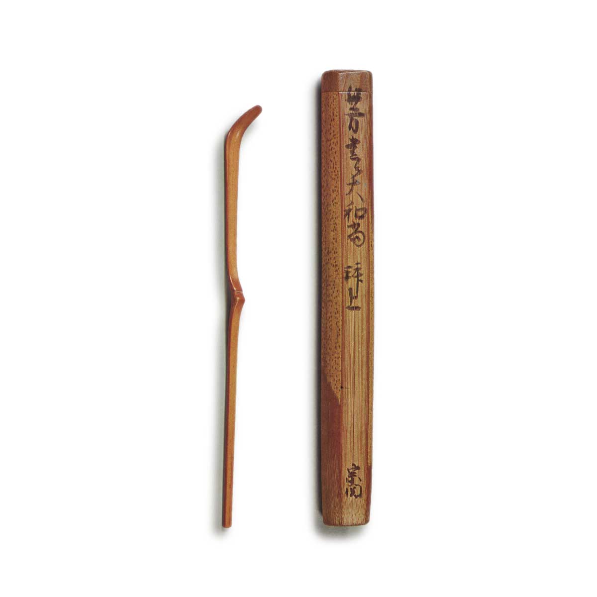 The skin of sesame bamboo is left untouched, and the skin is cut off diagonally at the bottom. The chamfered surface is inscribed “Hoshun Yamasho Haijo Soseki”.
