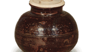 This incense container is a Cochin incense container that deserves to be appreciated, especially for the refined color of the yellow glaze. The blue glaze is colored like the shell of a crab, and the fact that it is as lovely as a ball in one’s hand is probably what makes this incense container so appealing to the eye.
