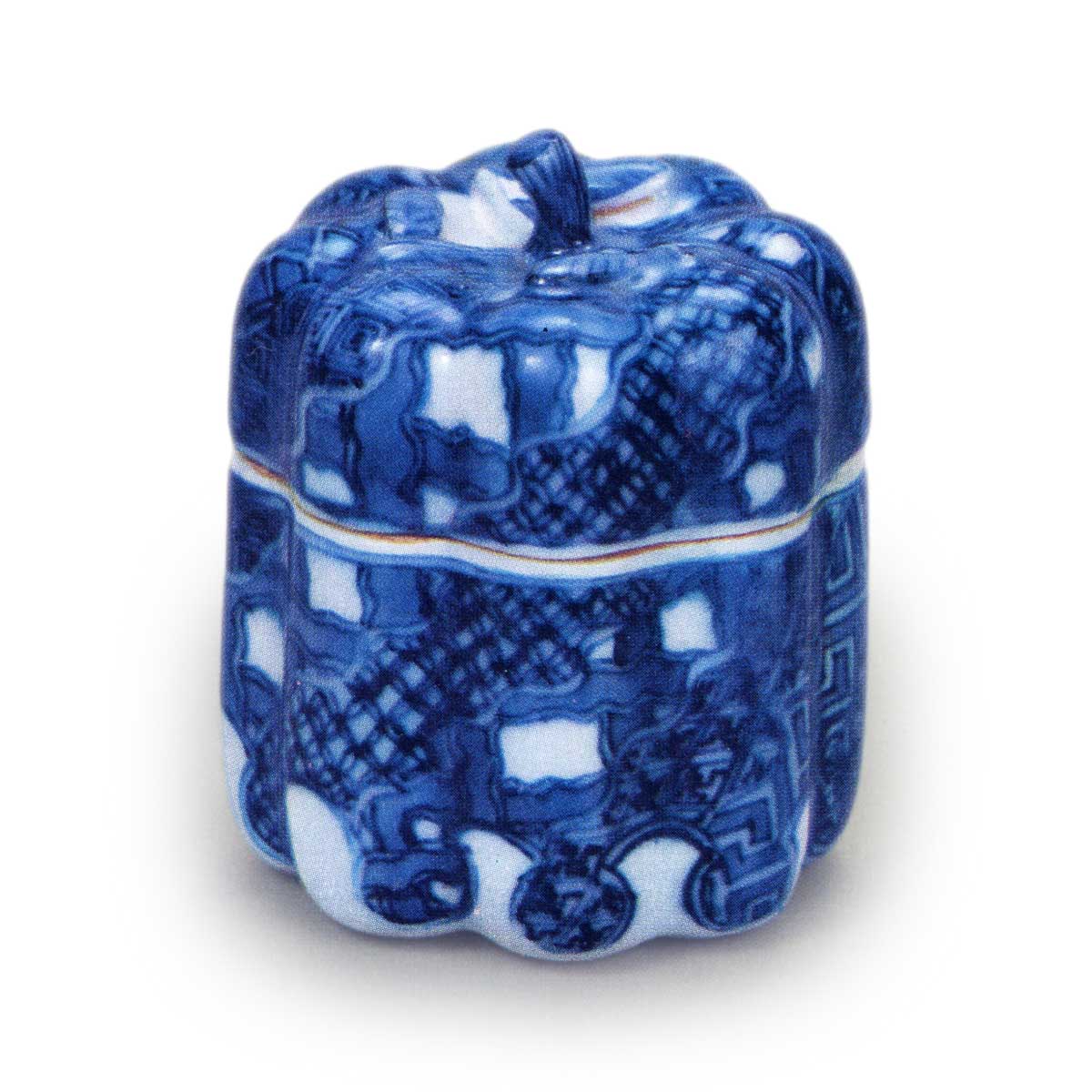 A defining characteristic of these auspicious kōgō is the bright white base glaze, the vivid and well-colored indigo glaze, and the harmonious transparency of the glass glaze, which together create an unparalleled beauty.